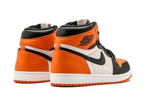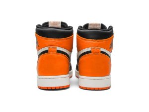 In 1985 on a Nike Europe tour, Michael Jordan shattered a backboard when throwing down a monstrous dunk while wearing an orange, black, and white uniform. Commemorating the moment and uniform, this 2015 Air Jordan 1 ‘Shattered Backboard’ (aka ‘Shattered Backboard’ 1.0) sneaker was released. Shortly after in the Fall of 2016, an Air Jordan 1 ‘Shattered Backboard Away’ (aka ‘Reverse’ and ‘Shattered Backboard 2.0’) was released. The sneaker keeps the black laces and Nike branding, but swaps out the orange toe box and black around the toe and tongue for white.