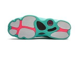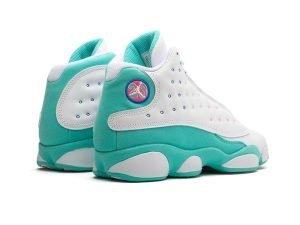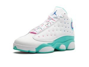 The Air Jordan 13 GS “Aurora Green” is a kids’ edition of Michael Jordan’s thirteenth signature shoe with a fresh design for the summer months. Lauded for its comfort both on and off the court, the Jordan 13 was worn by “His Airness” during his final season with the Chicago Bulls in 1997-98. This colorful take features a bright Aurora Green felt base with white leather paneling and pink, green, and blue stitching accents. An embroidered blue Jumpman covers the tongue while a pink Jordan Brand tab appears where the tongue connects to the toe. This Air Jordan 13 for kids swaps out the holographic “panther’s eye” emblem on the collar for an embroidered Jumpman logo with “23” branding. Colorful rope laces complete the fun design. The Air Jordan 13 GS “Aurora Green” was released on May 9, 2020.