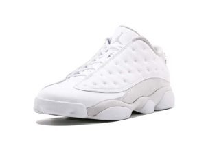 An icy white shoe option can always do your collection good, especially during the summer months. Enter the Air Jordan 13 Retro Low in the Pure Platinum colorway. As the nickname infers, we see the classic silhouette sport a pristine look. Credit that to an upper constructed with premium white tumbled leather on the toe and dimpled side panel. The mudguard features a clean suede in Pure Platinum that gives the design a simple, yet luxurious feel. The inner lining features the same colorway. Additional Jumpman branding appears on the heel in Metallic Silver to complete the slick Air Jordan design.