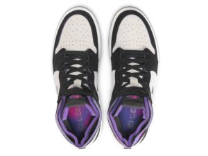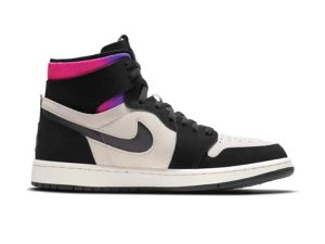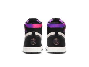 The Paris Saint-Germain x Air Jordan 1 High Zoom Comfort ‘Paris’ showcases vibrant pops of color on an otherwise neutral color scheme. The off-white suede upper is accented with black nubuck overlays and a reflective iridescent finish on the die-cut Swoosh. A blend of fuchsia and violet hues land on the deconstructed collar and classic Wings logo, along with a circular badge on the heel recognizing PSG, the French professional football club. Lightweight cushioning arrives via a foam midsole with Zoom Air cushioning in the heel, both of which are housed in a rubber carrier.