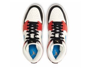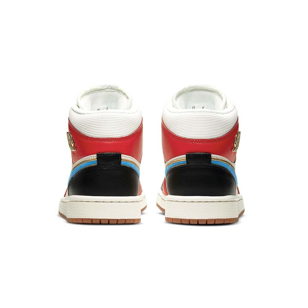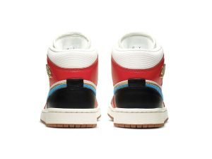 This offering of the mid-top Air Jordan 1 features a White leather base with Magenta overlays and a matching rubber outsole. Other details include cracked Yellow leather collars and Swooshes with contrast stitching throughout and “Familia” printed on the lateral forefoot. A pair of Black wax laces and liners atop a White midsole completes the design.