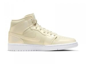 The Nike Wmns Air Jordan 1 Mid brings a wave of nostalgia in a fashion-forward visage distilled with narrative iconography. Delivered in October 2019, this women’s makeover drapes the patent leather profile, Swooshes and Wings logo in a pale Lemon Yellow hue. Jumpman branding to the tongue and insole offers a touch of contrast. The upper is offset by a white rubber cupsole infused with Air cushioning.