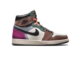 This Air Jordan 1 comes dressed in a Black, Archaeo Brown, and Dark Chocolate color combination. Although the image is a mock-up, it’s an accurate representation of what’s releasing. Utilizing White leather on the base while a mixture of Brown lands on the eyestay, ankle overlay, and outlines the Black Wings logo. Next, we have a Metallic Teal around the heel, Dark Green wraps the toe, and Purple adorns the forefoot overlay. Sticking out the most, Infrared appears on part of the laces and Nike Air branding on the tongue while Pinstripes runs down the ankle. Lastly, a Sail midsole and a Black rubber outsole finish the look.