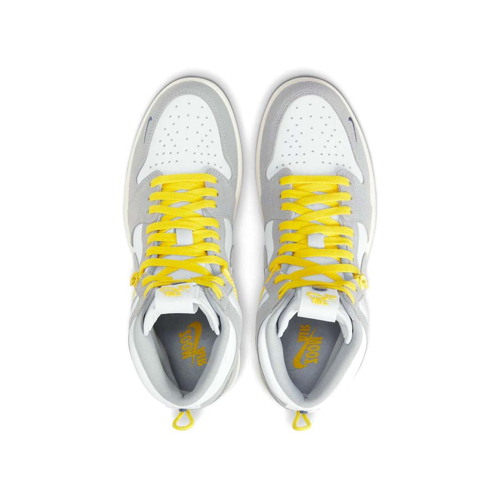 Jordan Brand has unveiled a new iteration of the Air Jordan 1 that allows it to transform into a low-top silhouette: AJ1 High Switch. Dubbed “Light Smoke Grey,” this model features a removable ankle collar zipper, offering a new spin on the court classic.Most of the shoe sports light uppers made up of delicate gray suede and white full-grain leather. There’s a large ripstop pull tab that sits at the tongue, complemented by a thin yellow one at the heel. Popping out against the shoe’s minimal leather uppers are a set of yellow laces that cover the forefoot, matching the same tone as the shoe’s removable ankle zippers. All of these details rest over a retro-like cream-colored midsole, finished off by a thin gray outsole.