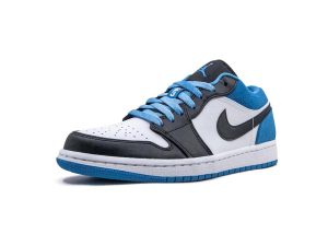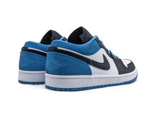 The Air Jordan 1 Low SE ‘Laser Blue’ updates the classic silhouette with an unexpected material program. The upper utilizes a white leather base with black leather overlays and a matching black Swoosh. The collar and heel panel, meanwhile, are built with perforated suede in a Laser Blue finish. The vibrant hue is repeated on the laces, rubber outsole and branding elements, which include an embroidered Jumpman atop the tongue and a Jordan Wings logo on the heel.