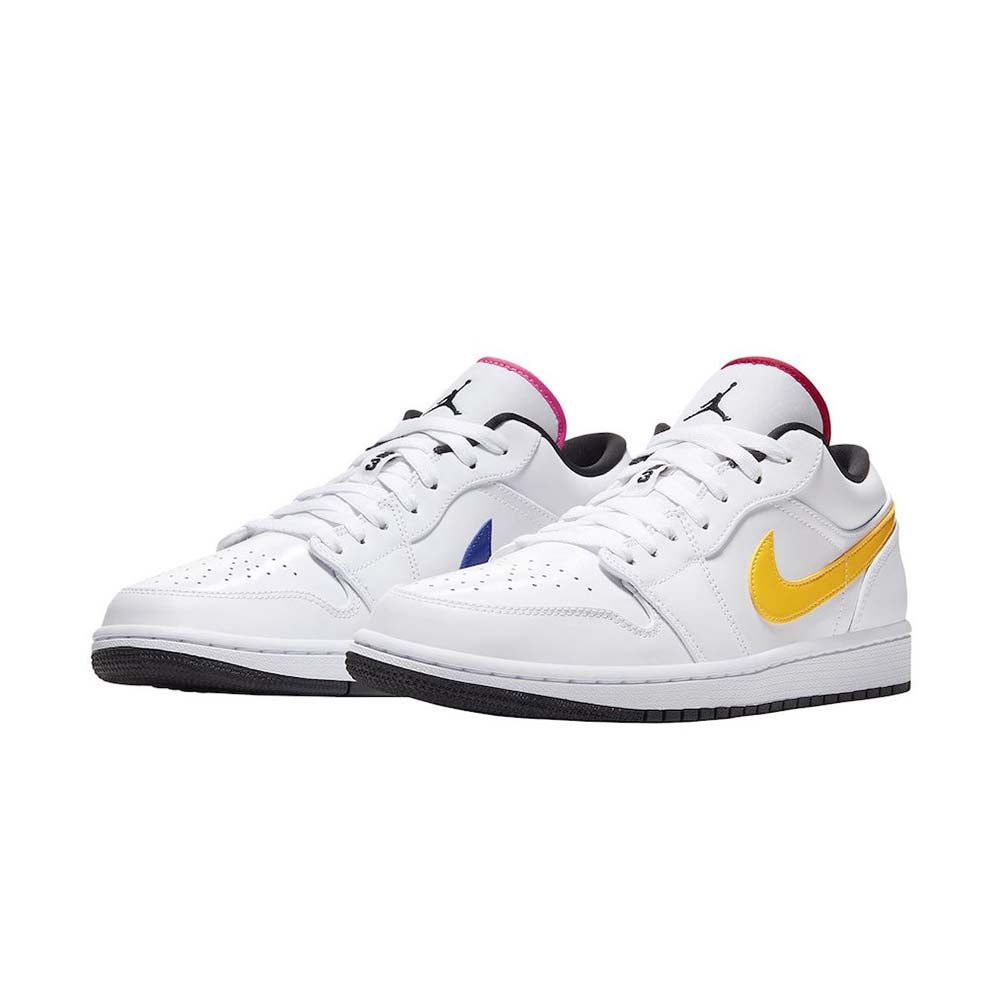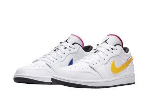 Jordan Brand has dropped a brand new colorful option of their low-top Air Jordan 1 ahead of the spring season.This offering of the Air Jordan 1 Low features a patent and smooth leather build done in White paired with Black branding on the tongues and heels atop a matching rubber outsole. Highlighting the shoe are Multicolored Swoosh logos on the sides as well as having two different colored inner tongues.