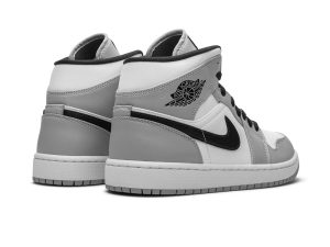 The Air Jordan 1 Mid “Light Smoke Grey” finds Michael Jordan’s first signature shoe in mid-top form in a shadowy, ultra-versatile color scheme. The Jordan 1 Mid has gained popularity in sneaker culture for its unique mid-top shape and range of desirable colorways. Both aspects come into play on the “Light Smoke Grey” colorway. White leather forms the base of the upper, appearing on the perforated toe, mid-panel, and collar. Light Smoke Grey leather overlays can be found on the forefoot, eyelets, collar, and heel. A black leather Swoosh is located on each side and black “Wings” branding dots the collar. Jordan Brand finishes off the look of this subdued design with a grey nylon tongue, black laces, and black nylon tongue tab with grey Jumpman detailing.