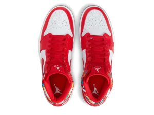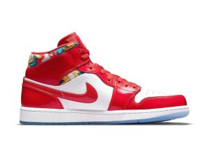 One thing you can always count on from Jordan Brand is new Air Jordan 1 Mid colorways. For our next pair to showcase, it comes highlighted with Red patent leather and geometric print.Looking closer, this mid-top Air Jordan 1 features White leather on the base while Red patent leather lands on the overlays and Swoosh logos. More Red hits the tongue label, liner, laces, and insoles while White adorns the Jumpman logos and midsole. Other highlights include a geometric print on the collar and an icy translucent outsole.