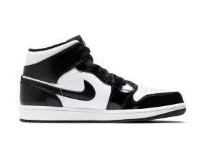 Crafted for big kids, the Air Jordan Mid SE GS ‘All Star 2021’ celebrates the NBA’s midseason showcase with a glossy design refresh. The mid-top makes use of an upper composed of white leather with contrasting black patent leather overlays throughout. A faux carbon fiber print is added to the sneaker’s Swoosh, heel and collar flap, the latter embellished with a classic Wings logo on the lateral side. An encircled Jumpman icon adorns the woven tongue tag.