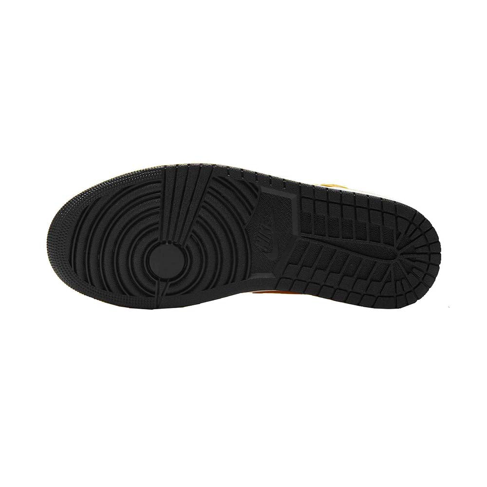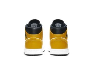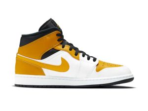The Air Jordan 1 Mid “University Gold” is a summer-ready colorway of the amid-top version of Michael Jordan’s first signature shoe. Appearing on the popular mid silhouette of the Jordan 1, the “University Gold” features warm University Gold leather detailing on the perforated toe, eyelets, mid-panel, collar, and heel. The same golden hue of leather appears on the Swoosh branding on both sides of the shoe and on the Jumpman insignia on the black nylon tongue tag. A black “Wings” logo can be found on the collar. A crisp cut of white tumbled leather appears on the forefoot, toe cap, and mid-panel. The white midsole is contrasted by a black outsole to round out the look of the Air Jordan 1 Mid “University Gold.”