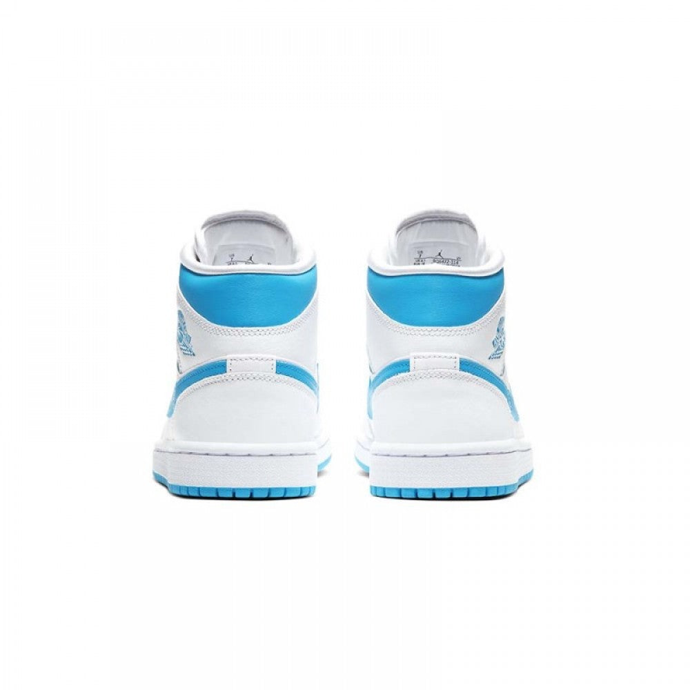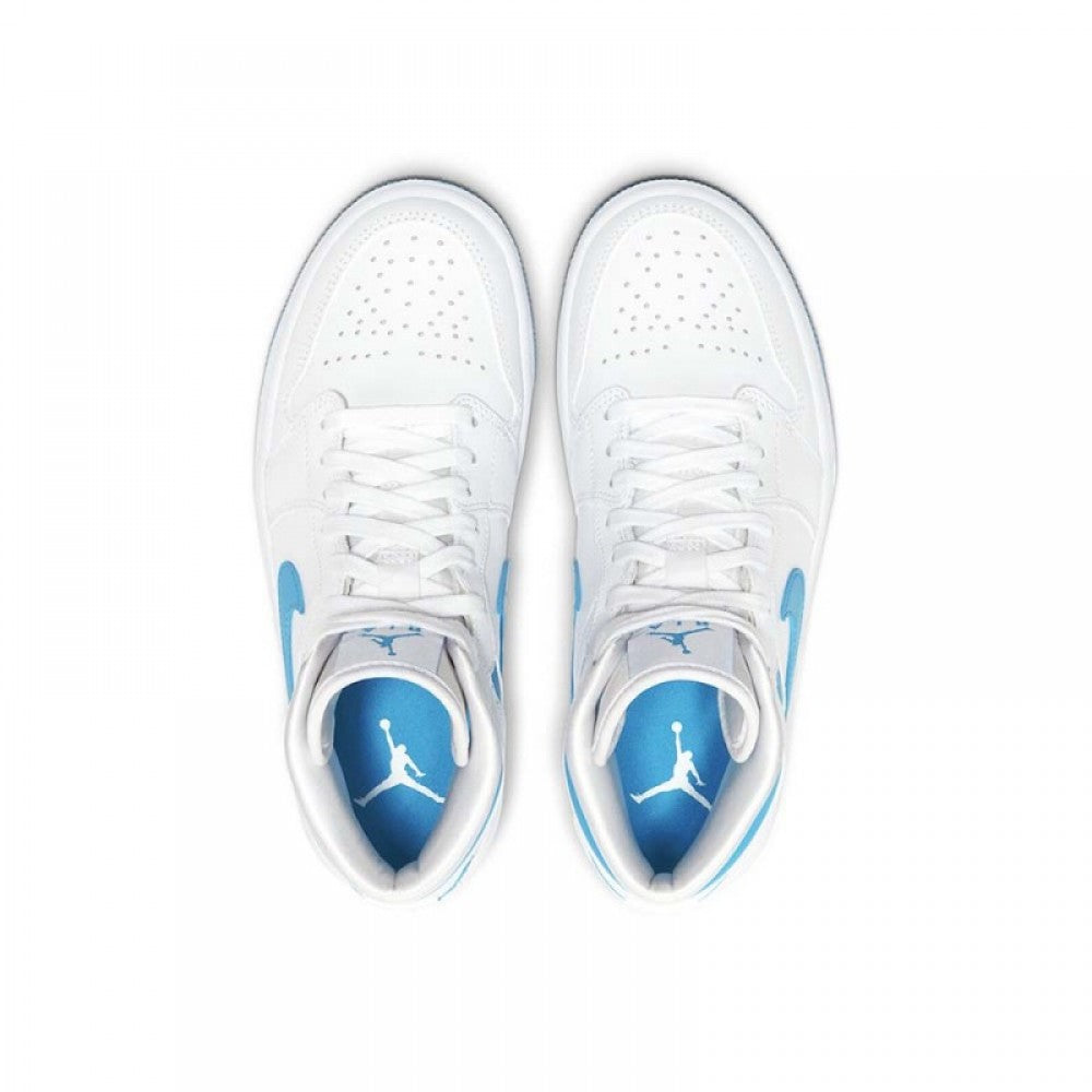 The Air Jordan 1 Mid “UNC” draws inspiration from Michael Jordan’s alma mater for a fresh new look on the mid-top silhouette. The famous University Blue of the University of North Carolina shines bright on this eye-pleasing colorway of the Jordan 1 Mid with the color covering the Swooshes and collar. A white leather base spans the perforated toe, mid-panel and heel. Additional hits of Carolina Blue can be found on the Wings logo on the collar and Jumpman branding on the white nylon tongue tab. Jordan Brand opts for an always classy white rubber midsole and contrasting light blue outsole to finish off the styling of the shoe.