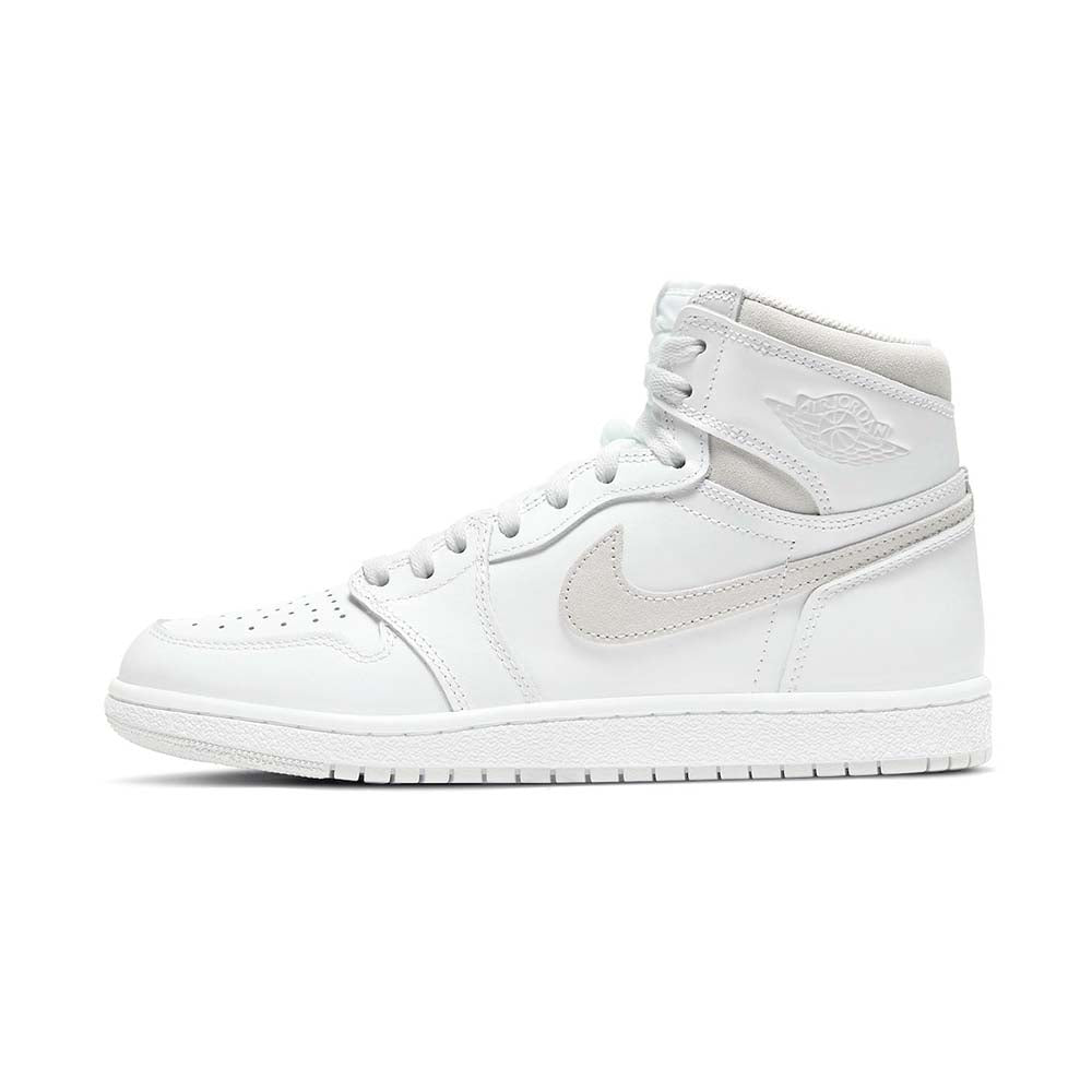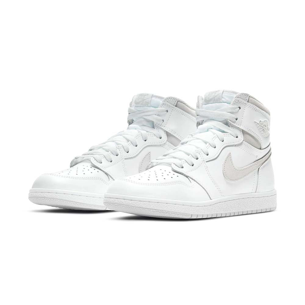 The Air Jordan 1 Retro High ’85 OG ‘Neutral Grey’ resurrects the coveted original colorway for the first time ever. This retro release features the classic high-cut shape of Peter Moore’s 1985 design, rendered in pristine white leather with subtle grey suede on the collar and signature Swoosh. Nike Air branding lands on the woven tongue tag and sockliner, while the classic Wings logo is stamped on the lateral collar flap. The high-top is mounted on a durable rubber cupsole, enhanced with encapsulated Air sole cushioning in the heel.