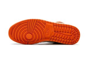 In 1985 on a Nike Europe tour, Michael Jordan shattered a backboard when throwing down a monstrous dunk while wearing an orange, black, and white uniform. Commemorating the moment and uniform, this 2015 Air Jordan 1 ‘Shattered Backboard’ (aka ‘Shattered Backboard’ 1.0) sneaker was released. Shortly after in the Fall of 2016, an Air Jordan 1 ‘Shattered Backboard Away’ (aka ‘Reverse’ and ‘Shattered Backboard 2.0’) was released. The sneaker keeps the black laces and Nike branding, but swaps out the orange toe box and black around the toe and tongue for white.