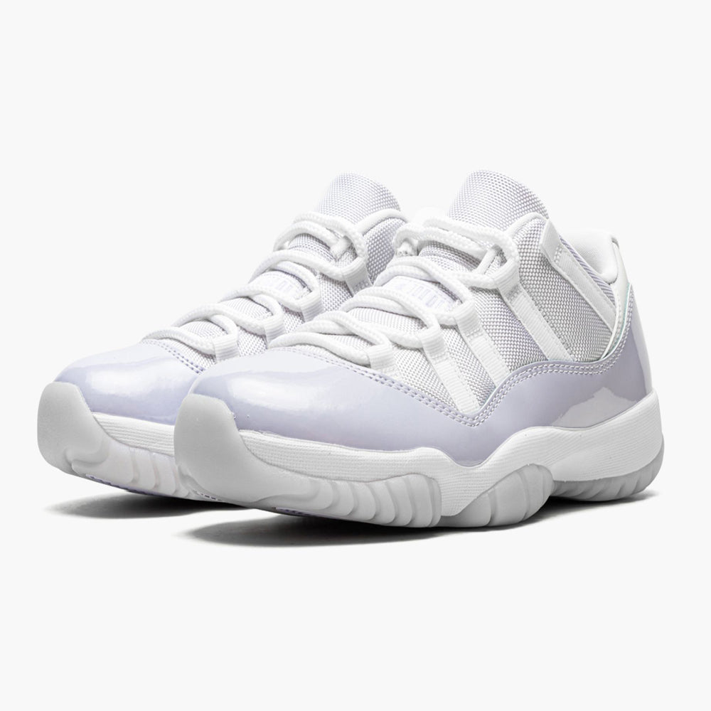 The Women’s Air Jordan 11 Low “Pure Violet” is a women’s-exclusive release of the classic basketball shoe in a colorway primed for spring. Its two-tone, white and violet color block replicates the two-color design of the Jordan 11 Low’s collection of initial releases from 2001. The upper is constructed with a white ballistic mesh material. A Pure Violet patent leather mudguard contrasts the neutral appearance of the shoe’s upper. White rope laces are incorporated into the quick-lace design setup. The white foam midsole houses a full-length Air cushioning unit. Underfoot, the semi-translucent outsole is fortified by a carbon fiber shank plate. Release date: April 28
