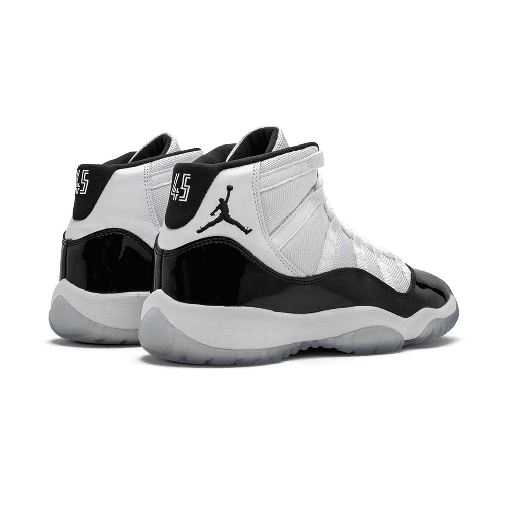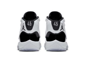 The Air Jordan 11 GS “Concord 2018” is the grade school-sized release of one of the most important sneakers of all time. This retro features the beloved design in its most accurate form since the original that Michael Jordan wore on court in 1996. The Air Jordan 11 GS “Concord 2018” features the same white ballistic mesh and leather upper with shining black patent leather construction as the men’s sizing. The kids’ Concord colorway also features “45” on each heel, referencing the original pair Jordan debuted in the 1995 NBA Playoffs. Michael Jordan wore number 45 when he returned to the NBA after his first retirement in 1994, and the number was on the very first pairs of the Air Jordan 11.