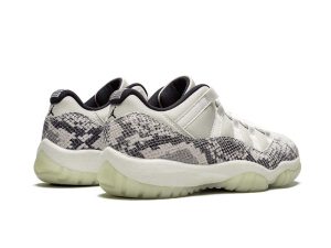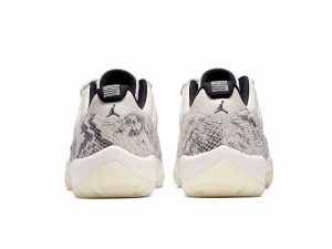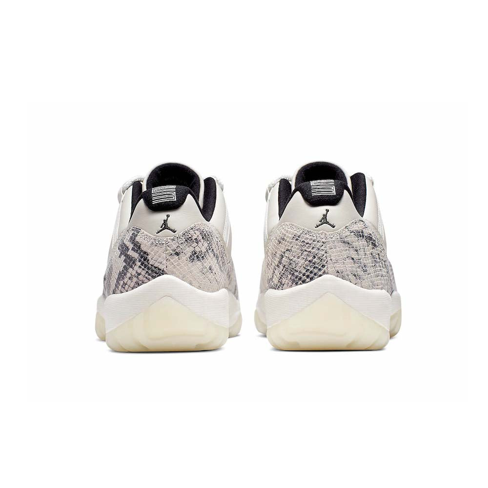 The Air Jordan 11 Low “Snakeskin Light Bone” is the low-top version of the revered Air Jordan 11 model. The first Air Jordan 11 Low with a snakeskin design dropped back in 2001 amidst a strong run of Air Jordan 11 releases in both the original mid-top and low-top form. Here, a Light Bone leather upper base allows the scaley snakeskin mudguard to attract warranted attention. The heel features black embroidered Jumpman and “23” logos on the mid-heel and collar respectively. Completing the look of the design is a white midsole and clear translucent outsole with a carbon fiber plate at the midfoot and red Jumpman logo above.