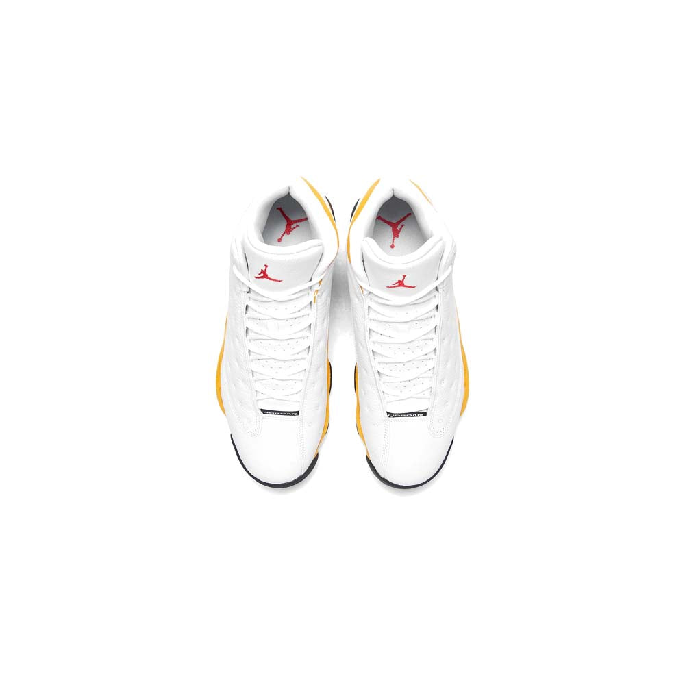 Teased late September before being unveiled amongst the Jumpman’s Spring 2022 line-up, the Air Jordan 13 “Del Sol” is about a month out from its official release. Recently surfaced retailer images only build up hype for the eventual debut, all while giving us a more detailed look at the simple yet clean colorway. Prepared in full family sizes and accompanied by OG packaging, the Air Jordan 13 “Del Sol” helps usher in Spring with a touch of bright yellow. The warm tone blossoms across the lower profile before wrapping the brunt of the heel. A bright green, then, pops over top courtesy of the holographic emblem, while the dimpled construction adjacent opts for a neutral white leather assembly. The Jumpman branding along the tongue and insole isn’t quite as a bereft of color, as both instances feature a bold, Bulls-reminiscent red.