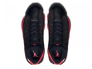 The Air Jordan 13 received a retro update in 2017 outfitted in its original color scheme. The Air Jordan 13 Retro ‘Bred’ 2017 features a black leather upper with matching 3M reflective ballistic mesh overlays on the sidewall. The sneaker also boasts a padded tongue for added comfort, True Red suede overlays, and the iconic green hologram on the ankle.
