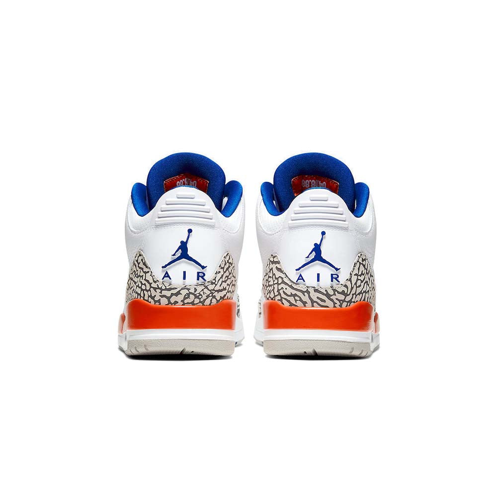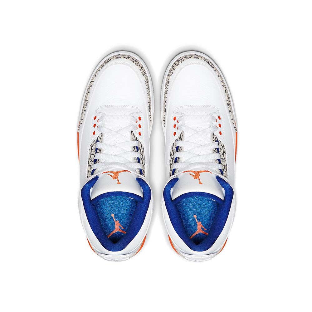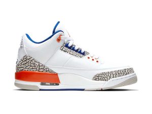 Jordan Brand will be releasing an Air Jordan 3 inspired by one of Michael Jordan’s 90s rivals, the New York Knicks.Dressed in a White, Old Royal, University Orange, and Tech Grey color scheme. This Air Jordan 3 features a White tumbled leather upper paired with Royal Blue and Orange contrasting accents throughout to give off aha NY Knicks vibes. Completing the design is an inner tongue tag that reads, “04.08.88” as a reference to the “The Virus Game,” when Michael Jordan played with a stomach virus while adding 47 points in a Chicago Bulls victory.