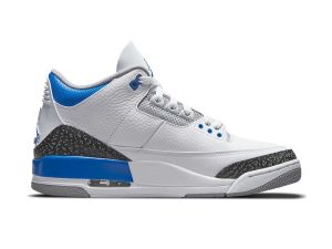 The shade of sporty blue will always be closely associated with the historic legacy of Air Jordan. While the shade fits neither Michael Jordan’s threads at UNC or Chicago, it’s been part of the origin story of Air Jordan footwear with the Air Jordan 1 and beyond. Specifically with the Air Jordan 3, the “True Blue” established the hue as one of the most significant in the Jordan annals, which is why new concoctions like the Air Jordan 3 “Racer Blue” just seem to make sense. Arriving at retailers on July 10th, 2021 is the “Racer Blue” Jordan 3s, complete with white tumbled leather uppers, grey accents, and a new style of elephant print on the toe-box and heel that is said to be reflective. Further separating itself from the OGs is the Jumpman logo on the heel (Nike Air is clearly reserved for the originals, special editions, and collaborations).