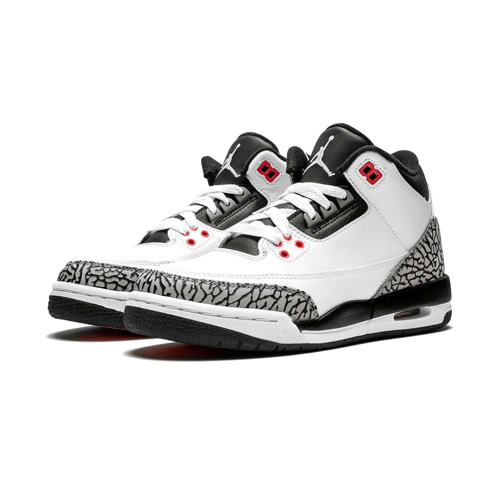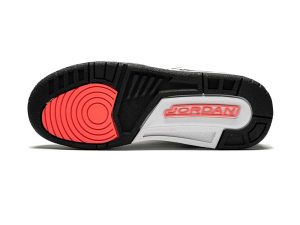 The Air Jordan 3 Retro BG ‘Infrared 23’ slightly modifies the appearance of the ‘White Cement’ offering of the Jordan 3, keeping the elephant print paneling intact while incorporating black accents on the sockliner, eyestay and midsole. Infrared tones replace the Fire Red hits, appearing on the eyelets and visible Air unit.