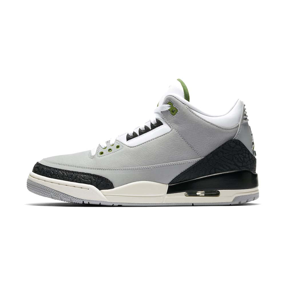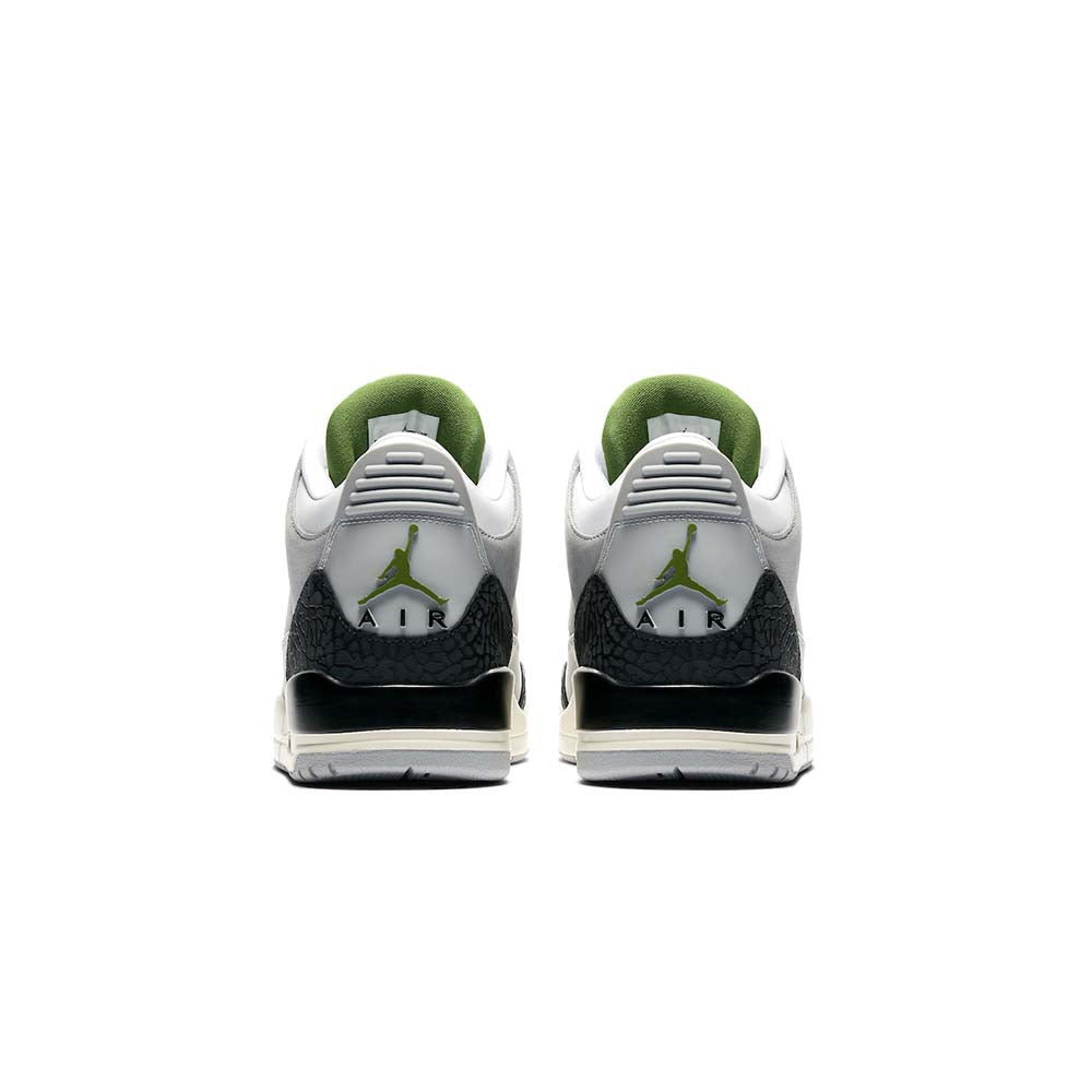The Air Jordan 3 ‘Chlorophyll’ inspired by the Nike Air Trainer 1 will release during the Holiday 2018 season. Both models were designed by Tinker Hatfield and MJ was seen wearing the Air Trainer 1 off-court.This Air Jordan 3 features a Light Smoke Grey, Chlorophyll, Black, White and Sail color combination. Featuring Grey across the upper while Chlorophyll accents land on the eyelets, Jumpman branding, inside of the tongue and hangtag. Finishing the look is Black on the elephant print overlays.
