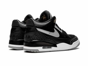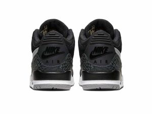 Air Jordan 3 Tinker ‘Black Cement’ Different from the iconic “Black Cement” color scheme that was made famous on the original Air Jordan 3. This offering features a Black suede and leather upper with matching Black elephant print overlays. 3M Reflective Cement Grey covers the tongues, eyelets, and Swoosh logos while having tonal Black “Nike Air” branded heel tabs. A White midsole, Metallic Gold detailing atop a Grey rubber outsole completes the design.