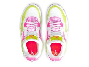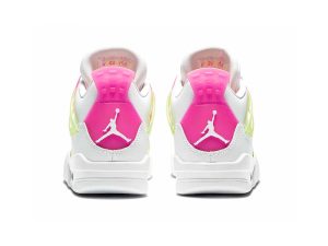 Made for big kids, the Air Jordan 4 Retro GS ‘Lemon Venom’ updates Tinker Hatfield’s 1989 design with candy-bright accents. The white leather upper is treated to increased ventilation, thanks to open quarter panels covered in pink netting. The same vibrant hue is repeated on the molded eyelets and heel tab, embellished with Jumpman branding. Contrasting pops of Lemon Venom land on the semi-translucent wings, forefoot overlay, and tongue tag.