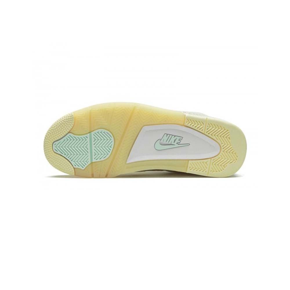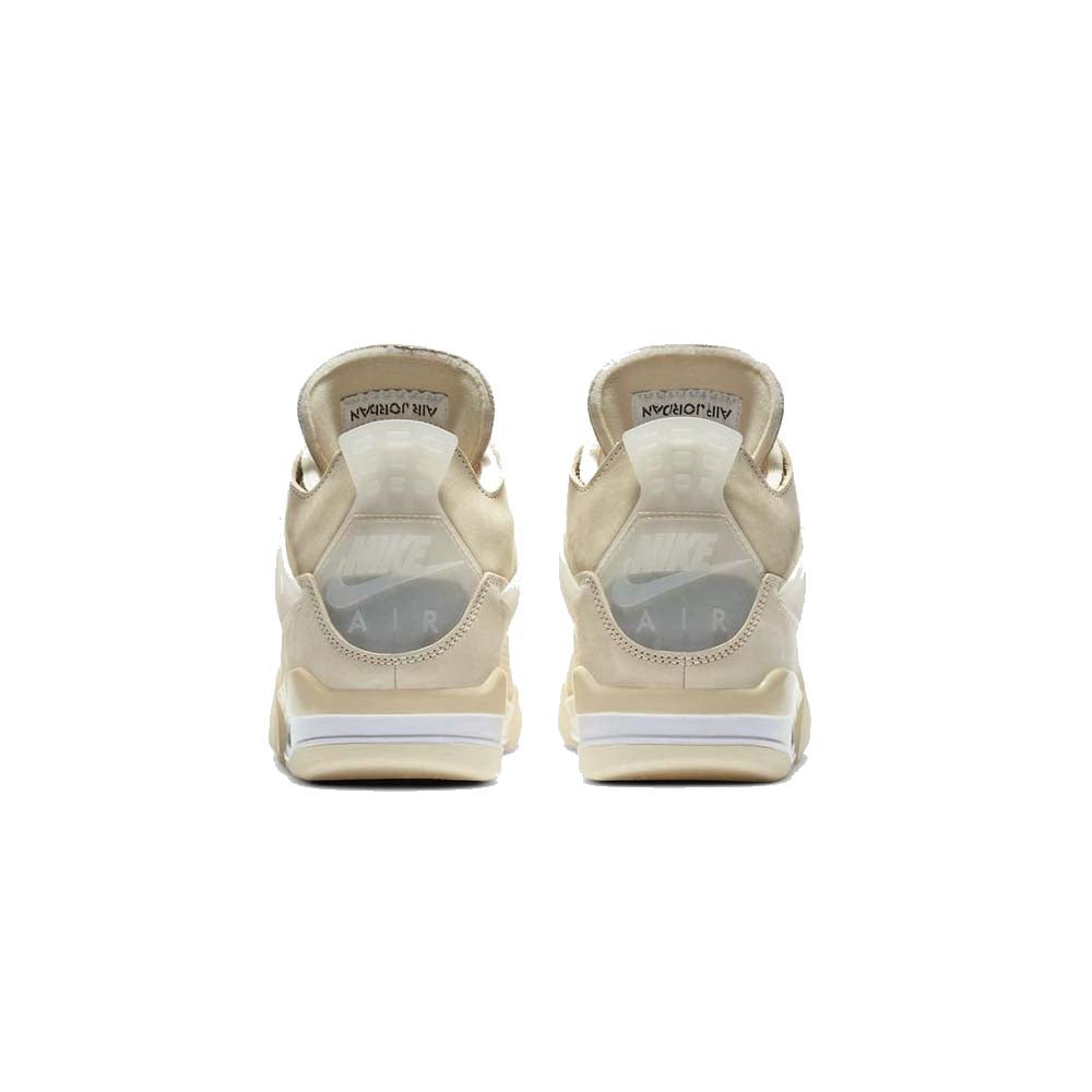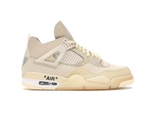 The Air Jordan 4 Retro Off-White Sail features a monochrome upper with an ultra vintage feel. The cream coloured leather base is combined with a gridded side cage and some synthetic elements such as the Wings and the frosted TPU heel. The usual ” SHOELACES ” lettering on the laces and ” AIR ” above the air bubble are added as a signature, as are the Off-White and Air Jordan tags attached to the laces. Finally, frayed seams and an ankle collar that seems to have no trim finish off this silhouette, which is all about relief and the play of materials.With a completely different design from what Virgil Abloh has been offered so far on its sneaker collaborations, the Air Jordan 4 Retro Off-White Sail is sure to spark the interest of the community.
