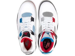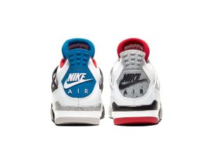 Released in November 2019, the Air Jordan 4 Retro SE ‘What The 4’ takes the original four colorways of the Air Jordan 4 and combines them in a ‘What The’ format that has been seen on several Nike silhouettes. This original color palette is realized on the entire shoe, with the beloved Varsity Red, Cement Grey and Military Blue that Jordan 4 fans recognize and love. The discordant aesthetic works across the leather uppers, signature lacing wings and Jumpman logos on the tongue and heel to create something familiar yet new.