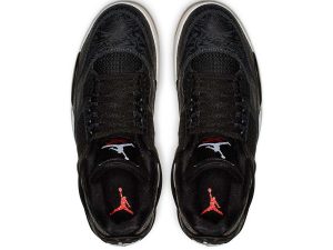 The Air Jordan 4 Black Laser is a special edition of the iconic Michael Jordan signature shoe featuring a classic laser graphic by Jordan Brand. Originally appearing on the Air Jordan 20 and an older release of the Air Jordan 4, the Laser pattern features an intricate mix of graphics inspired by Jordans career and the history of Jordan Brand. It appears on this 2019 release as a glossy tonal print on the black leather upper. The all-black upper is complemented with a white midsole and gum rubber outsole. Hits of red appear on the Flight text on the tongue as well as the Jumpman on the outsole and insole. The Air Jordan 4 Black Laser released on January 19, 2019.