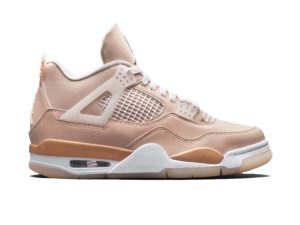 Already in the hands of select Jordan Brand athletes, the Air Jordan 4 “Shimmer” is due to land this Fall 2021 alongside many an adjacent women’s exclusive.Dressed in muted colors, the upper pays homage to the makeup palettes that proliferate neutral tones.This is evident throughout the upper, whose nubuck overlays and polished leathers brandish a light natural shade that’s expected to develop a patina over time. Elsewhere, transparent TPU wings and lace locks complement the rest of the construction, while metallic Jumpman branding alludes to the mirrors found in the aforementioned product.