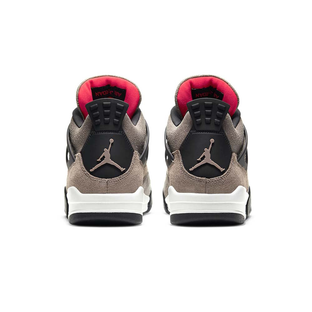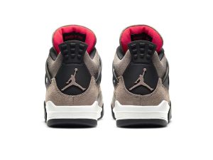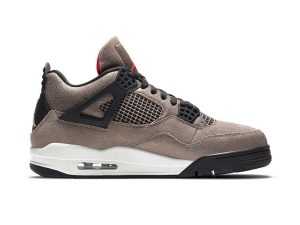 The Air Jordan 4 Retro ‘Taupe Haze’ presents an understated colorway of Tinker Hatfield’s 1989 design. A dark taupe finish is applied to the upper, constructed from a blend of textured suede with cracked leather on the collar, tongue and mudguard. Contrasting black hits land on the laces, plastic wings and heel tab, the latter marked with an embossed Jumpman logo. A second Jumpman icon is rendered in Infrared on the tongue tag, matching the interior lining of the tongue. Lightweight cushioning is provided by a two-tone PU midsole, housing a visible Air unit in the heel and encapsulated Air in the forefoot.