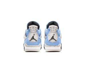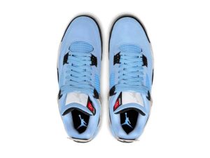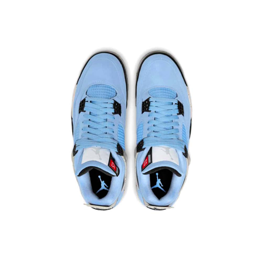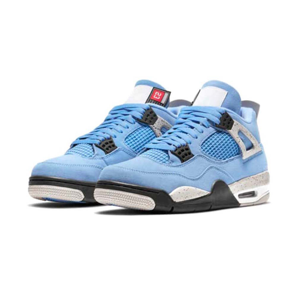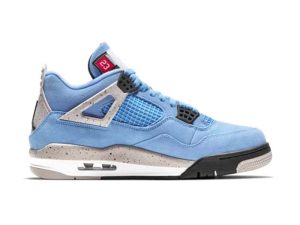 The Air Jordan 4 Retro ‘University Blue’ updates the classic silhouette with a suede upper in a familiar hue inspired by Michael Jordan’s UNC alma mater. The bright blue palette is contrasted by a speckled grey finish on the sneaker’s supportive wings and back heel, featuring a raised Jumpman icon in black. Secondary Jumpman branding adorns the woven tongue tag, designed to mimic a jock tag that typically appears on the bottom hem of Jordan jerseys.