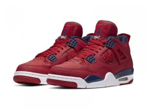 Dressed in a Gym Red, White, Metallic Gold, and Obsidian color scheme. This Air Jordan 4 features a Gym Red upper with Obsidian detailing atop a White midsole. Highlighting the shoe are graphics inspired by the national flags from the participants of the tournament replacing the netting on the sides as well as on the lower tongue. Also added is a “For The Love of The Game” label on the inner tongue.