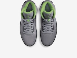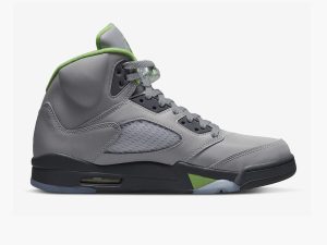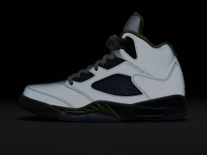 The Air Jordan 5 “Green Bean 2022” brings back the 2006 colorway with a reflective finish that shines when exposed to light in the dark. This May 2022 release of the Jordan 5 “Green Bean” colorway is nearly identical to the original version of the sneaker. The shoe’s grey synthetic upper is treated with a reflective finish that is supposedly inspired by the original sketch of the Jordan 5 by Tinker Hatfield. According to rumors, Hatfield sought to design the Air Jordan 5 with a fully reflective upper, but ultimately scrapped the idea prior to the shoe’s production in 1990. As for the rest of the modern “Green Bean’s” design, bright neon green accents appear on the interior lining, on the sharktooth detailing on the midsole, and on the embroidered Jumpman on the silver reflective tongue and on the heel. The shoe features translucent mesh on the sides and on the lower tongue. Release date: May 28, 2022