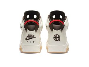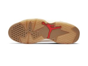 The Air Jordan 6 “Quai 54” is one of two colorways released by Jordan Brand in 2020 that coincides with the annual streetball tournament in Paris, France. Both colorways of Michael Jordan’s beloved sixth signature shoe display a Sail leather base with patterned textile underlaid panels on either side. This version features an orange and maroon multidirectional motif within the aforementioned design found on the mid-panel. Brown embroidered Jumpman branding can be found on the cream colored nylon overlay on the tongue. The red lace toggle features a white Jumpman logo and co-branded “Nike Air” and “Quai 54” embroidery graces the left and right heel, respectively.
