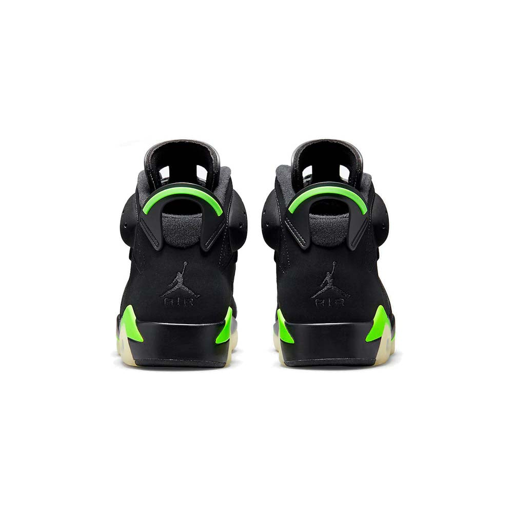 The Air Jordan 6 Retro ‘Electric Green’ showcases a simplistic two-tone color scheme that calls to mind an Oregon PE colorway that surfaced online in 2018. The iconic silhouette sports a black nubuck upper with contrasting hits of neon green on the tongue and spoiler-like pull tab. Tonal Jumpman branding is embroidered on the sneaker’s back heel. Lightweight cushioning is provided by a polyurethane midsole, enlivened with additional green pops and fitted with a visible Air sole unit. Underfoot, the semi-translucent rubber outsole is treated to a glow-in-the-dark finish.