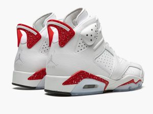 The Air Jordan 6 “Red Oreo” is a colorway of Michael Jordan’s sixth signature shoe that unofficially nods to the popular snack of the same nickname. Jordan Brand’s “Oreo” color story continues on the Jordan 6 “Red Oreo,” which was released in June 2022 as part of its Summer 2022 release cycle. The “Red Oreo,” specifically, seemingly shows love to the Red Velvet Oreo flavor, sans any official Oreo branding or likeliness. The upper features a white leather construction that gives way to contrasting University Red accents. The fiery shade of red is found on the midsole and spoiler, both with white speckle detailing, and on the embroidered Jumpman on the lace shroud and lace toggle. A tonal Jumpman logo is stitched onto the heel. Release date: June 4, 2022