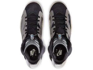 Dressed in a Black, Light Smoke Grey, Sail, and Chrome color scheme. This Air Jordan 6 employs a mixture of colors and materials, including transparent TPU on the midsole and pull tab, Grey rubber on the tongue, Black suede on the toe and vamp and a Metallic Jumpman hangtag. Inspirational messages printed on the sockliner include “Be Kind”,”Embrace Uniqueness” and “Spread Love”.