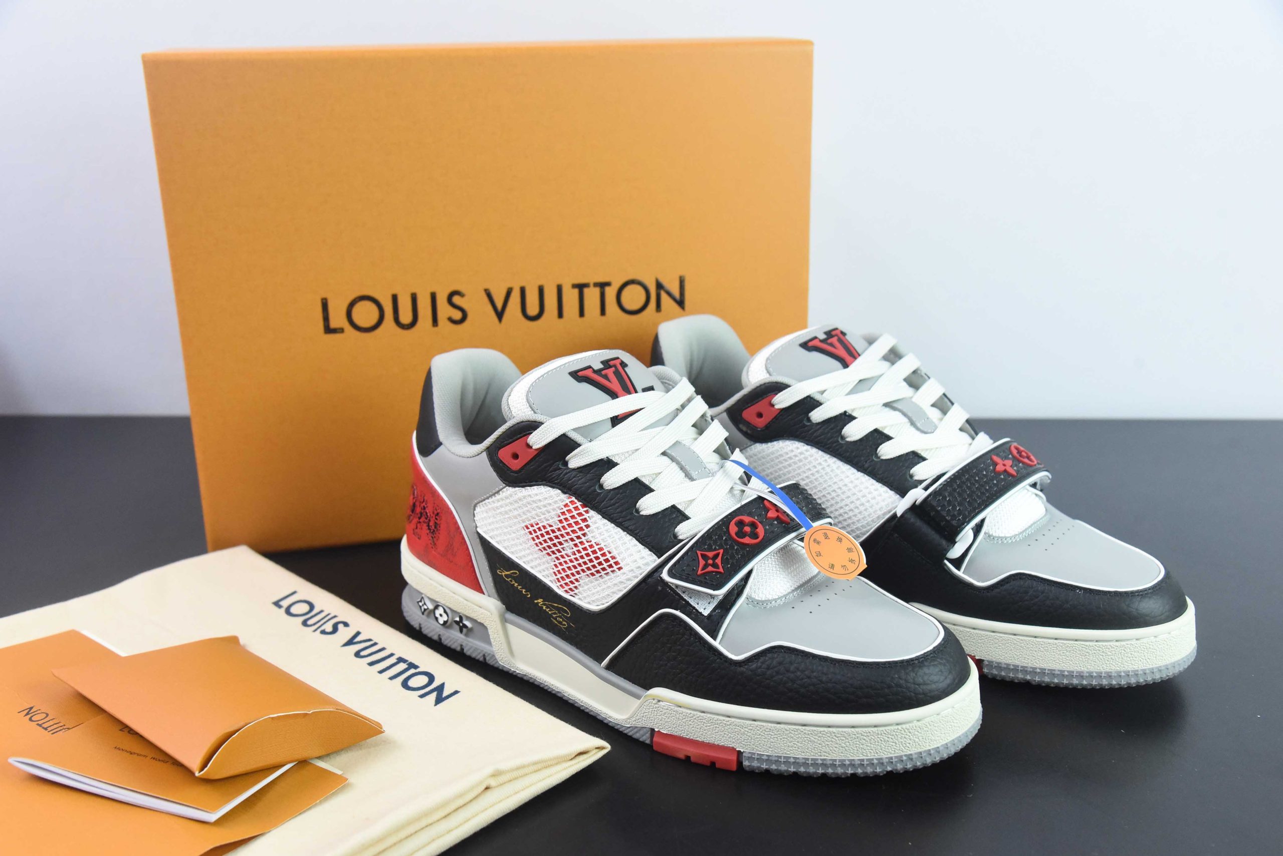 L&V Trainer Black Red Monogram Flower
