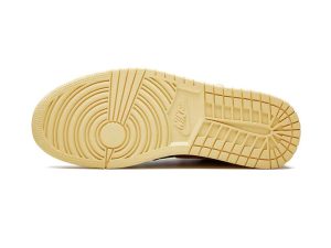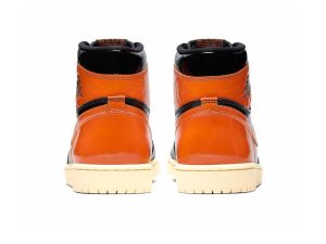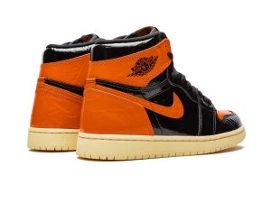 The Air Jordan 1 OG “Shattered Backboard 3.0” is the third release of the immensely sought-after “Shattered Backboard” colorway of the Air Jordan 1. The “Shattered Backboard” theme draws inspiration from an exhibition game in Italy in which Michael Jordan played during his rookie season. During the game, Jordan famously broke the glass of the backboard following a monstrous dunk. The first two iterations of the “Shattered Backboard” were a success due to their use of premium materials and eye-catching orange and black colorways. The “Shattered Backboard 3.0” falls in line with previous versions of the sneaker and adds new design features to stand out on its own. One noticeable difference is that a crinkled glossy patent leather upper replaces the leather found on the first two “Shattered Backboard” models. The black crinkled glossy leather is featured on the mid-panel, toe, and ankle collar. Pale Vanilla Starfish crinkled glossy leather adds bursts of color around the toe, quarter panel, Swoosh, and lateral heel. A black leather Wings logo sits near the collar. A vintage-inspired yellow sole gives the sneaker a lovingly worn in appearance.