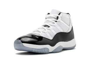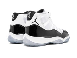 The Air Jordan 11 “Concord (2018)” marks the return of one of the most celebrated sneakers of all time. The famous black and white Jordan 11 worn by Michael Jordan in 1995 and 1996 needs no introduction, but this latest edition does feature some details not seen on previous “Concord” retro releases. The remastered construction features a higher cut to the black patent leather mudguard, as well as “45” — the uniform number Jordan initially wore when he returned from his first retirement in 1995 — replacing the traditional “23” on the heels.