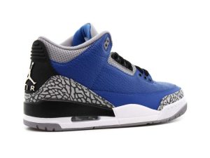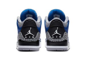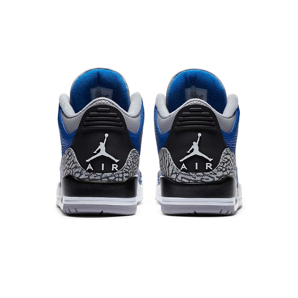 The Air Jordan 3 “Varsity Royal” is a desirable non-original colorway of Michael Jordan’s third signature shoe that was released in Fall 2020. Dressed in a color scheme reminiscent of the “Red Cement” Jordan 3 that debuted to much fanfare during the NBA’s All-Star Weekend in 2020, the “Varsity Royal” plays up on the silhouette’s throwback styling while remaining fresh in every aspect of its design. Appearing in the same color block of the “Black/Cement” colorway, the upper swaps black tumbled leather with Varsity Royal leather. The iconic elephant print panels are found on the toe and heel. White Jumpman detailing appears on the heel and an Air window in the heel of the midsole helps retain the original look of the Jordan 3.