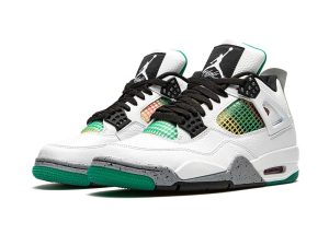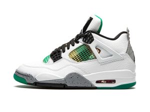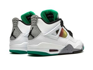 The Women’s Air Jordan 4 “Rasta” celebrates Jamaica Carnival, a festival of color, music, dance, and food, that takes place annually in Kingston, Jamaica. Appearing in women’s sizing, the Jordan 4 “Rasta” features charming overtures to reggae culture by displaying the colors of the Rastafarian movement on the netting found on the tongue and mid-panel. Black accents are found throughout, including for the Jumpman logo patch on the tongue, lace eyelets, and outsole. White leather forms the base of the shoe as it is featured on the toe, mid-panel, and heel. The shoe incorporates elements reminiscent of the “White/Cement” Jordan 4, namely the grey speckled midsole and heel tab.