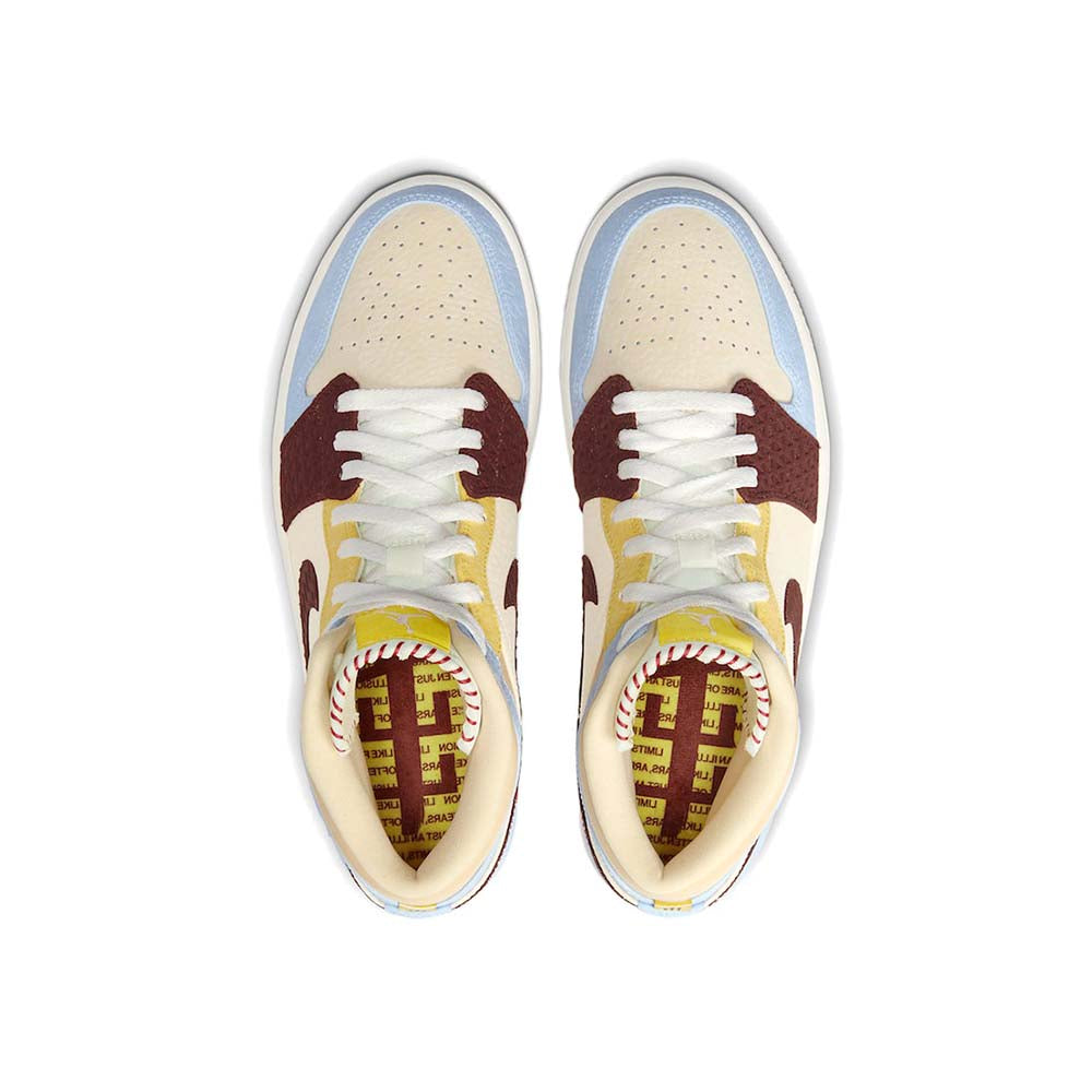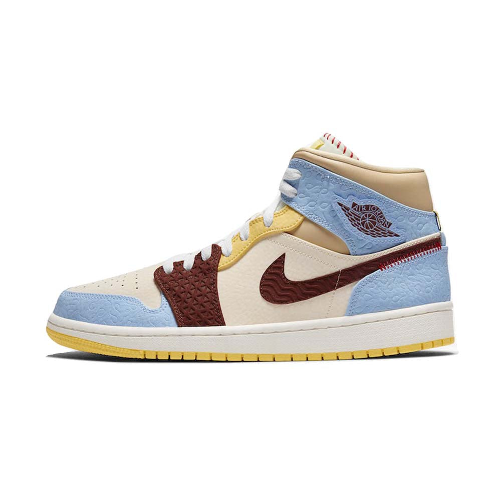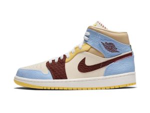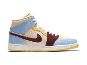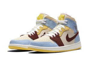 Released November 2019, the Maison Chateau Rouge x Air Jordan 1 Mid SE ‘Fearless’ recalls the famous hoops shoe from 1985 with a special collaboration courtesy of the Paris-based fashion brand. Designers and co-founders Youssouf and Mamadou Fofana adorned the basketball classic with colors and patterns reflective of their African heritage. Debossed patterns and contrast stitching updates the original Air Jordan with global inspirations as part of the ‘Fearless Ones’ collection.