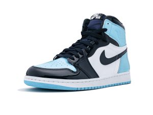 The women’s Air Jordan 1 High “UNC Patent Leather” is another appealing look for the women’s collection of Michael Jordan’s first signature shoe. The colorway is inspired by Jordan’s college career at the University of North Carolina, and the striking women’s Jordan 1 features a full patent leather build that shines in tones of Blue Chill, Obsidian, and white across the upper with more of the Carolina blue tone for the outsole. It also features the Air Jordan wings logo embossed onto the ankle for an even cleaner look to the glossy colorway.