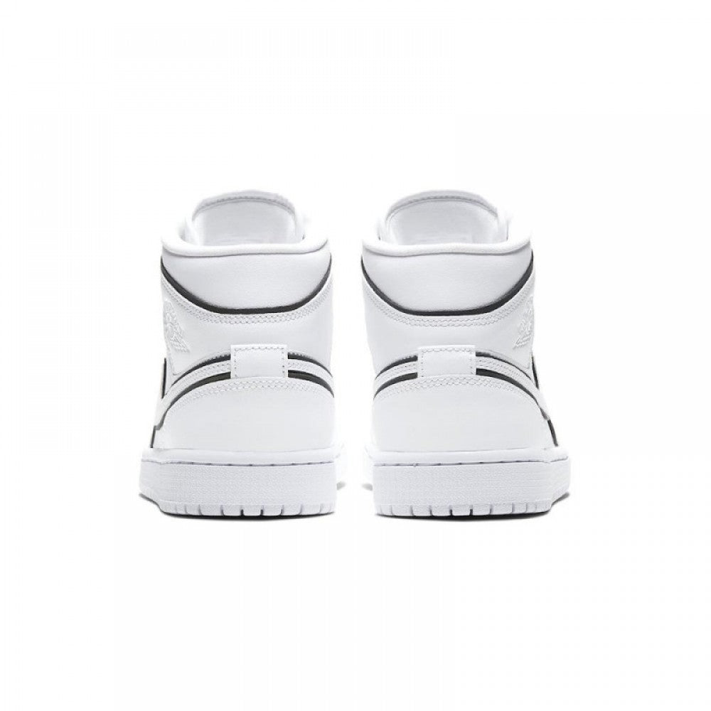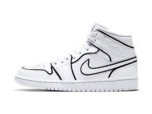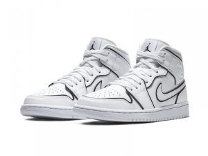 The Women’s Air Jordan 1 Mid “Iridescent Outline” is a women’s-exclusive edition of the mid-top Jordan 1 with a unique “outlined” construction. The upper is composed of a white leather base and features detailing in the form of a perforated toe, embossed tonal Wings logo on the collar and Swoosh on the mid-panel. Iridescent trimming is seen around each panel in a reflective material that changes color when hit with light. The rest of the women’s-exclusive Air Jordan 1 Mid, including the tongue, midsole, and outsole, is finished off in crisp white.