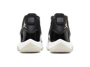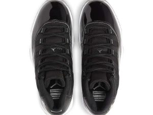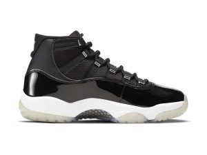 The Air Jordan 11 GS “Jubilee” is the youth sizing of the colorway that salutes the 25-year anniversary of Michael Jordan’s eleventh signature shoe. The “Jubilee” was released by Jordan Brand in Winter 2020 and is inspired by a concept sketched by Tinker Hatfield during his designing of the Air Jordan 11 in the mid ’90s. Elements of both the “Concord” and “Space Jam” colorways are combined into one on the “Jubilee” including a black patent leather mudguard, which is also culled from the “Bred” design. The word “Jordan” is spelled out in metallic silver text along the side of the eyelets in reference to the original sketch of the shoe by Hatfield. A silver Jumpman emblem can be found on the collar, and the traditional “23” on the back of the heel is also given the same silver treatment.